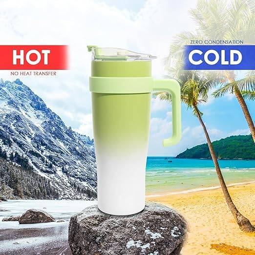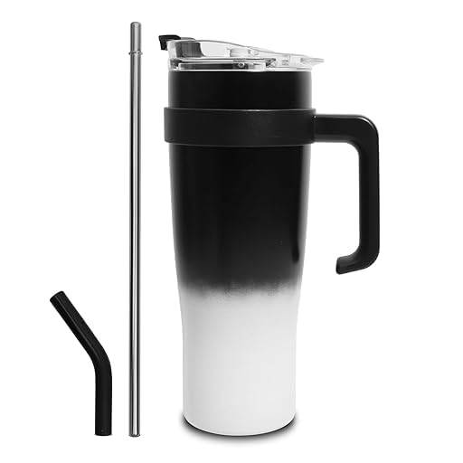 Premium Design: Double-Wall Stainless Steel Tumbler With Ombre White Finish, Ergonomic Handle, And Secure Lid With Drinking Spout For Convenience