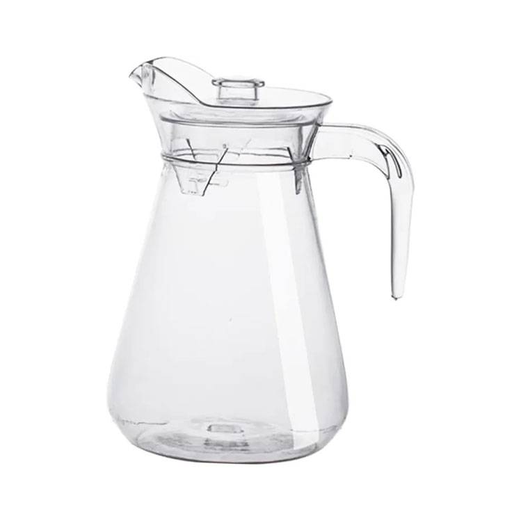 The jug is made of clear glass, allowing you to see the liquid inside.