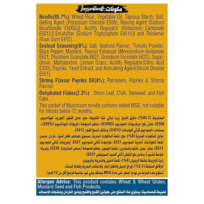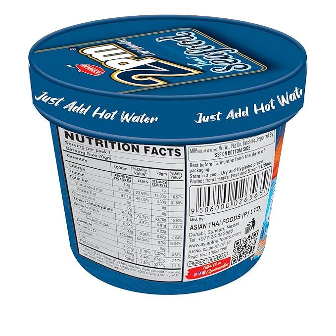2PM Thai Seafood Cup Noodles offer a delightful taste of Thailand with the convenience of a quick meal. Packed with dehydrated fish cake and seaweed, these noodles deliver a rich, authentic seafood flavour that's both savoury and satisfying. Simply add hot water to enjoy a delicious bowl of noodles infused with the aromatic and vibrant tastes of Thai cuisine. Perfect for a quick lunch, dinner, or snack, 2PM Thai Seafood Cup Noodles provide a convenient way to indulge in the complex and enticing flavours of Thailand. Each bite offers a harmonious blend of tender noodles, seafood, and seaweed, ensuring a memorable culinary experience.