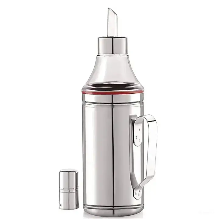 Easy and controlled flow of oil due to the return ventilation hole.. Ideal for holding Mustard oil, Coconut oil, Olive oil, Canola Oil, vinegar, sauce etc. The high-grade Stainless Steel gives it durability and strength that ensures that the pot does not crack.