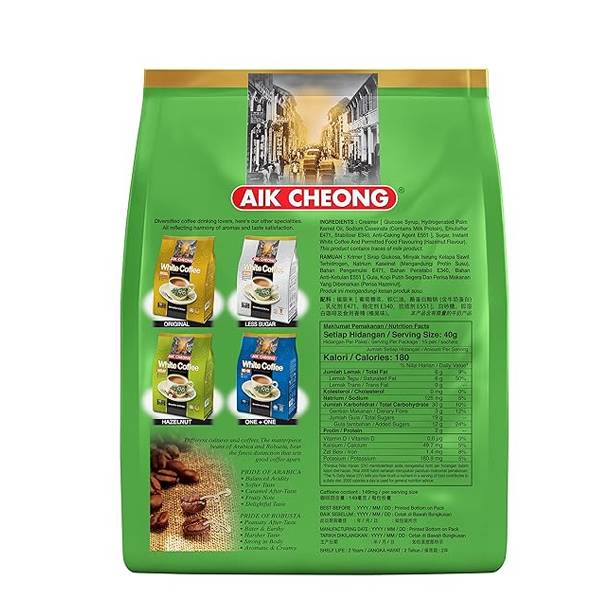 The Aik Cheong White Coffee Kopi Putih Pracampur 4 in 1 Hazelnut (456g pack) is a popular instant coffee mix known for its smooth, creamy texture and distinct nutty aroma.