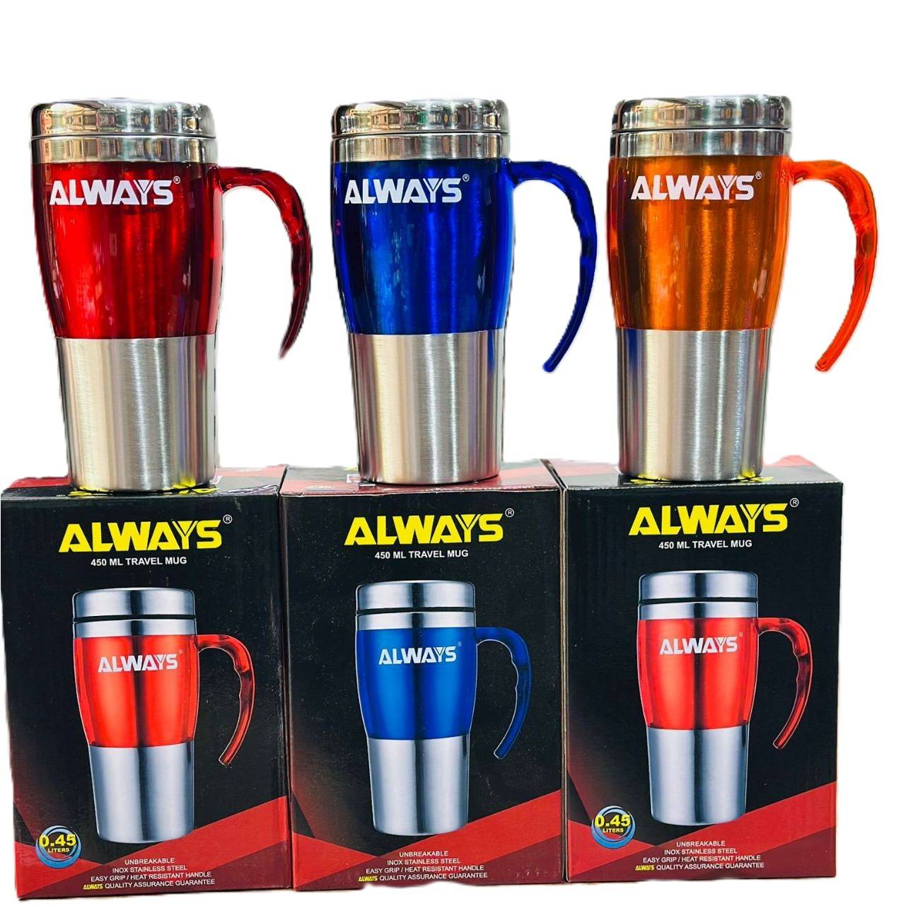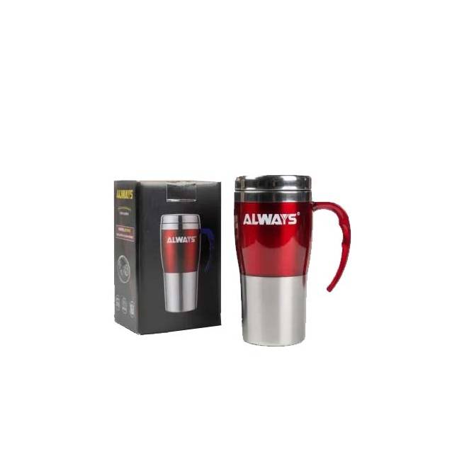 The 450ml Travel Mug is made from stainless with an insulated double wall body, to keep your drinks warm.