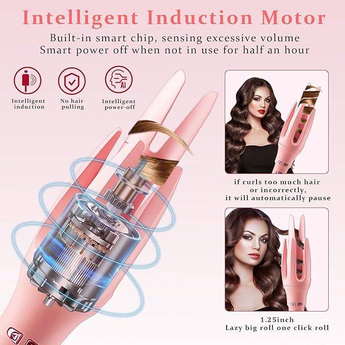 Anti Scalding/Tangling&Auto Shut-off: The tip of the automatic rotating curler and the outside of the aluminum tube are insulated to protect your face and hands from being burned during use. Automatic curler built-in intelligent magnetic induction motor anti-tangle design, when the hair is placed too much or incorrectly, it will automatically pause and prevent hair from getting stuck. If no action is detected within 30 minutes, this curling iron will automatically close, maximizing your safety.