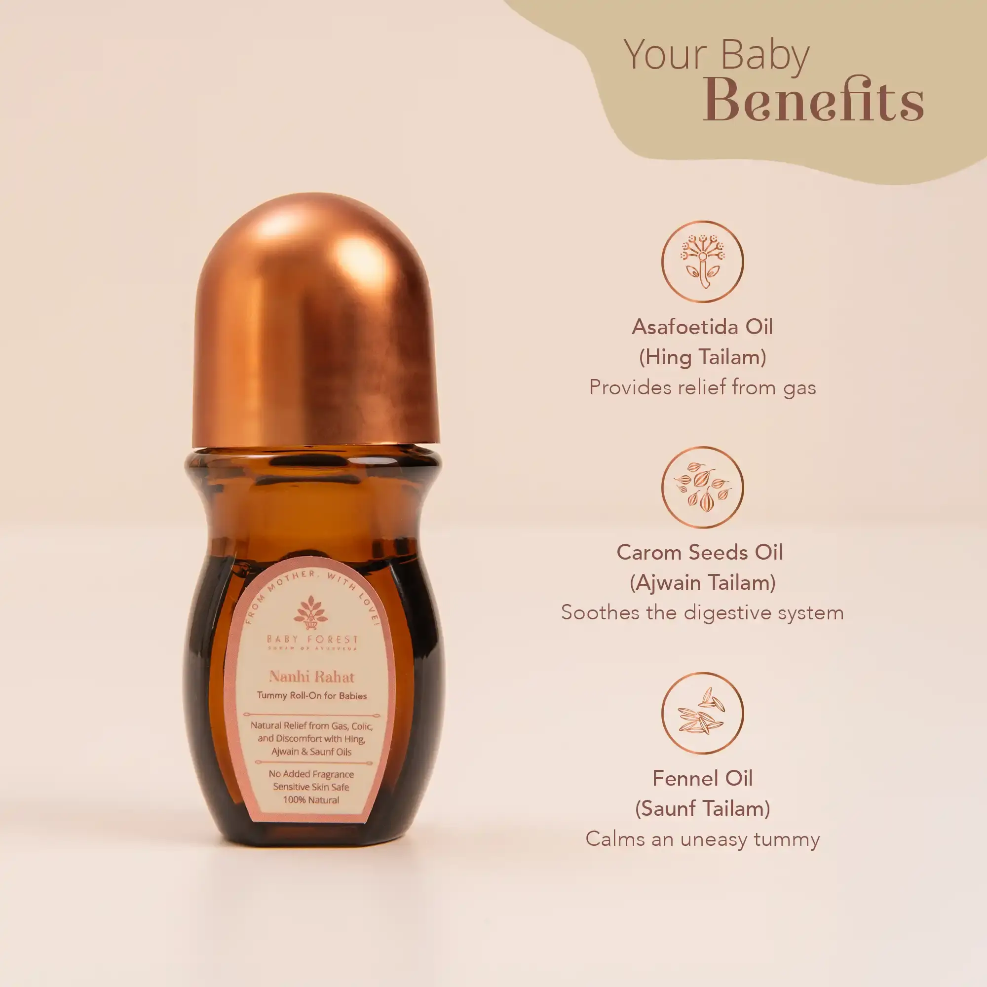 Ajwain Oil is known to ease gas and abdominal discomfort in babies. It helps relax tummy muscles and supports digestive comfort.