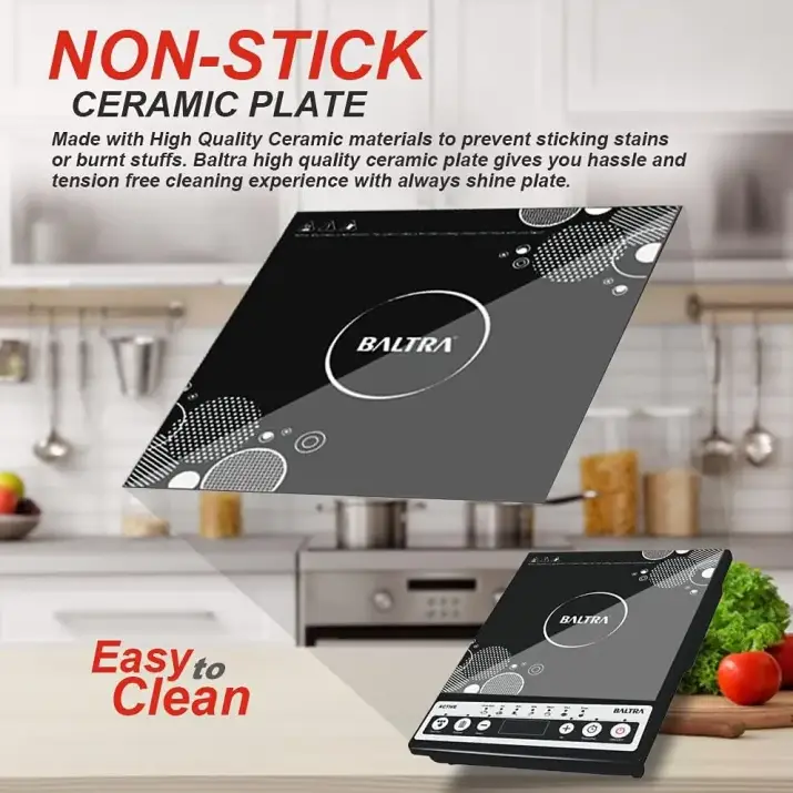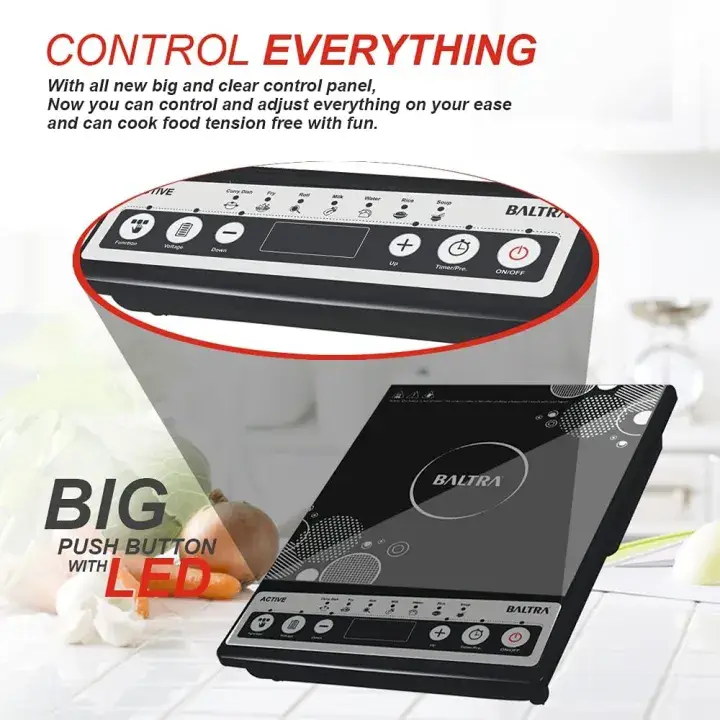 Push Button Function: Baltra's induction cooktop offers a complete operational push-button control system. This full push-button control allows you to regulate the power and temperature for various items, making cooking more efficient.