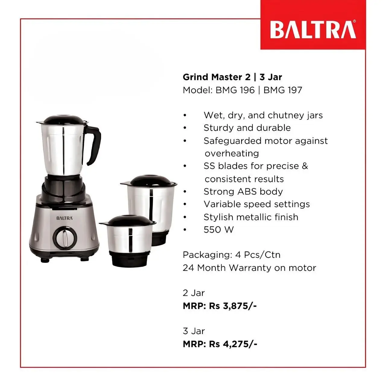 Product Details Of Baltra Mixer Grinder Grind Master 3 BMG 197