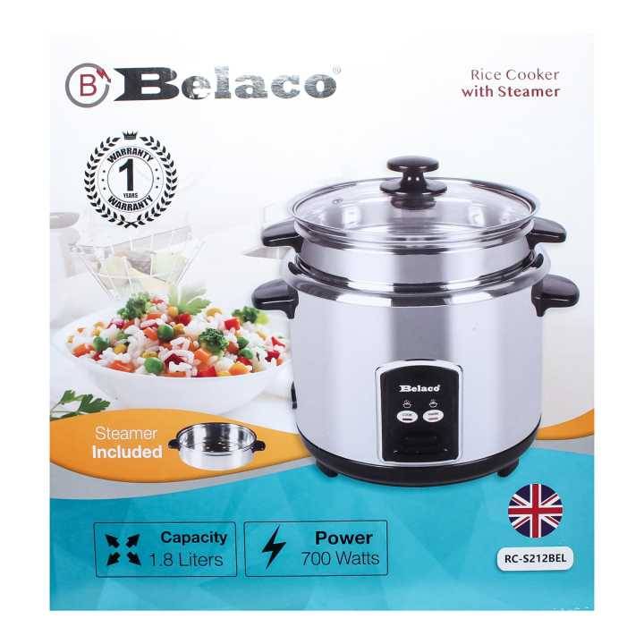 Capacity 1.8L Automatic cooking and warming system stainless Steel body Remova with Aluminum steamer Easy clean non stick inner pot Accesories measuring cup and spoontempered glass lid Aluminum inner pot