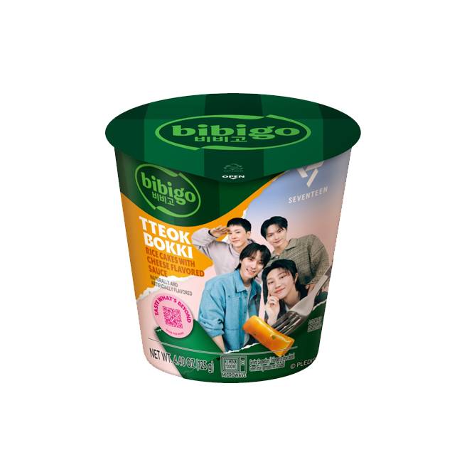 Enjoy Bibigo Tteokbokki Cup Cheese, a convenient Korean rice cake snack with a rich cheesy twist. Just heat and savor the perfect blend of chewy tteok and creamy cheese flavor.