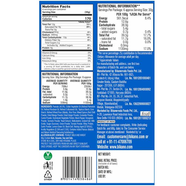 Enjoy the crunchy and spicy goodness of Bikano Karare Peanut, roasted peanuts coated with bold masala for a fiery twist. Packed with protein and vibrant flavors, this snack is perfect for tea time, parties, travel, or anytime you want a tasty, satisfying crunch.