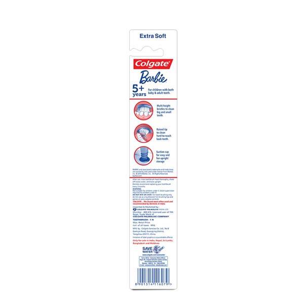 Let's make brushing fun for kids with Colgate Kids Barbie toothbrush. Its multi-height bristles help clean big and small teeth evenly. It is equipped with a non-slip handle and suction cup for better control and easy storage.