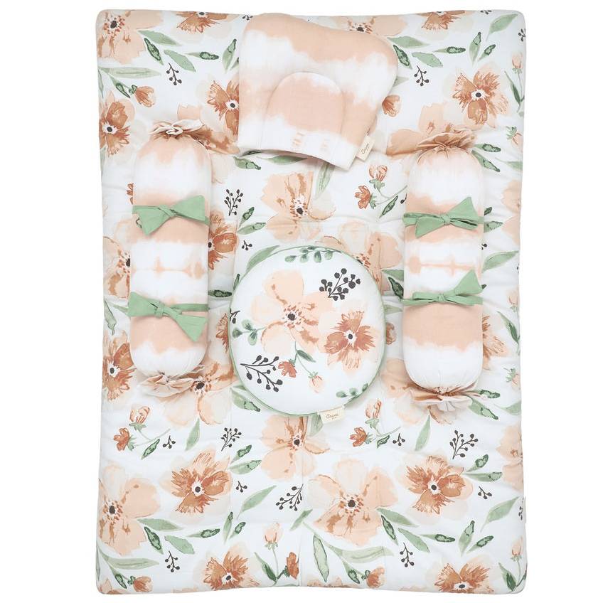Well Designed: Designed to provide comfort to your child, it comes with bolsters on both to sides to help save the baby from rolling away. The cavity neck pillow provides support for the neck and head. It said in shaping the head, the decorative pillow is for your baby to play with. This set can be used for naptime, playtime massage time and when traveling.
