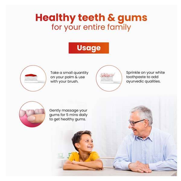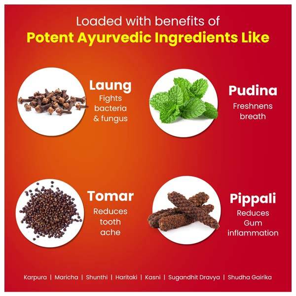 Dabur Dant Manjan is an ayurvedic oral care solution made with time tested herbal ingredients that help maintain strong teeth and healthy gums. Enriched with clove, mint, camphor, and other traditional herbs, it helps fight bad breath, plaque, and gum problems while providing long-lasting freshness. Ideal for daily use, Dabur Dant Manjan supports overall oral hygiene naturally and effectively.