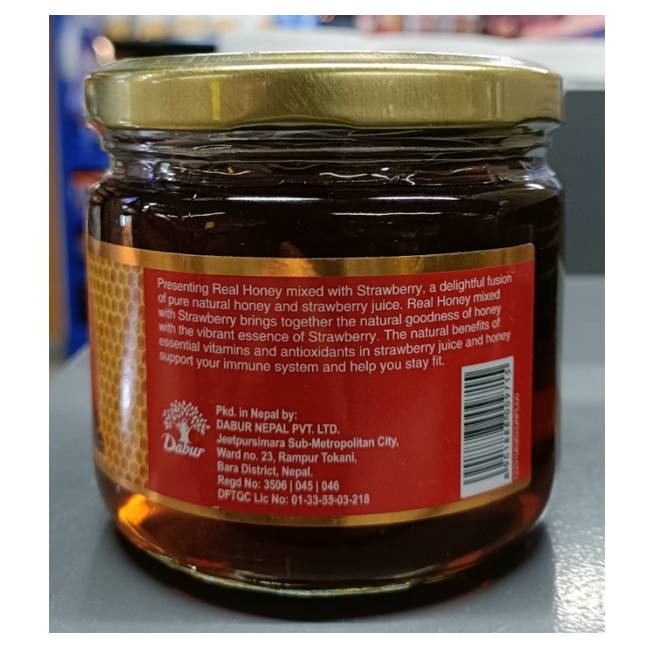 Delight your taste buds with the fruity goodness of Dabur Real Honey Mixed With Strawberry. This delicious blend combines the natural sweetness of pure honey with the luscious flavor of ripe strawberries, creating a smooth, aromatic spread that’s perfect for everyday use. Enjoy it as a tasty topping on toast, pancakes, or waffles, stir it into milk or smoothies, or drizzle it over desserts for a naturally sweet twist.