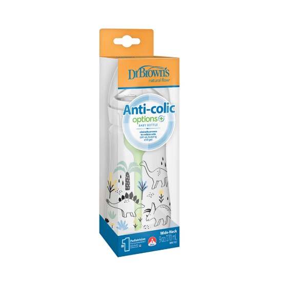 Dr Brown's 9 oz/270 mL Options+ Wide-Neck Designer Bottle, Multi Dino Design, 1-Pack, WB91010-INTLX