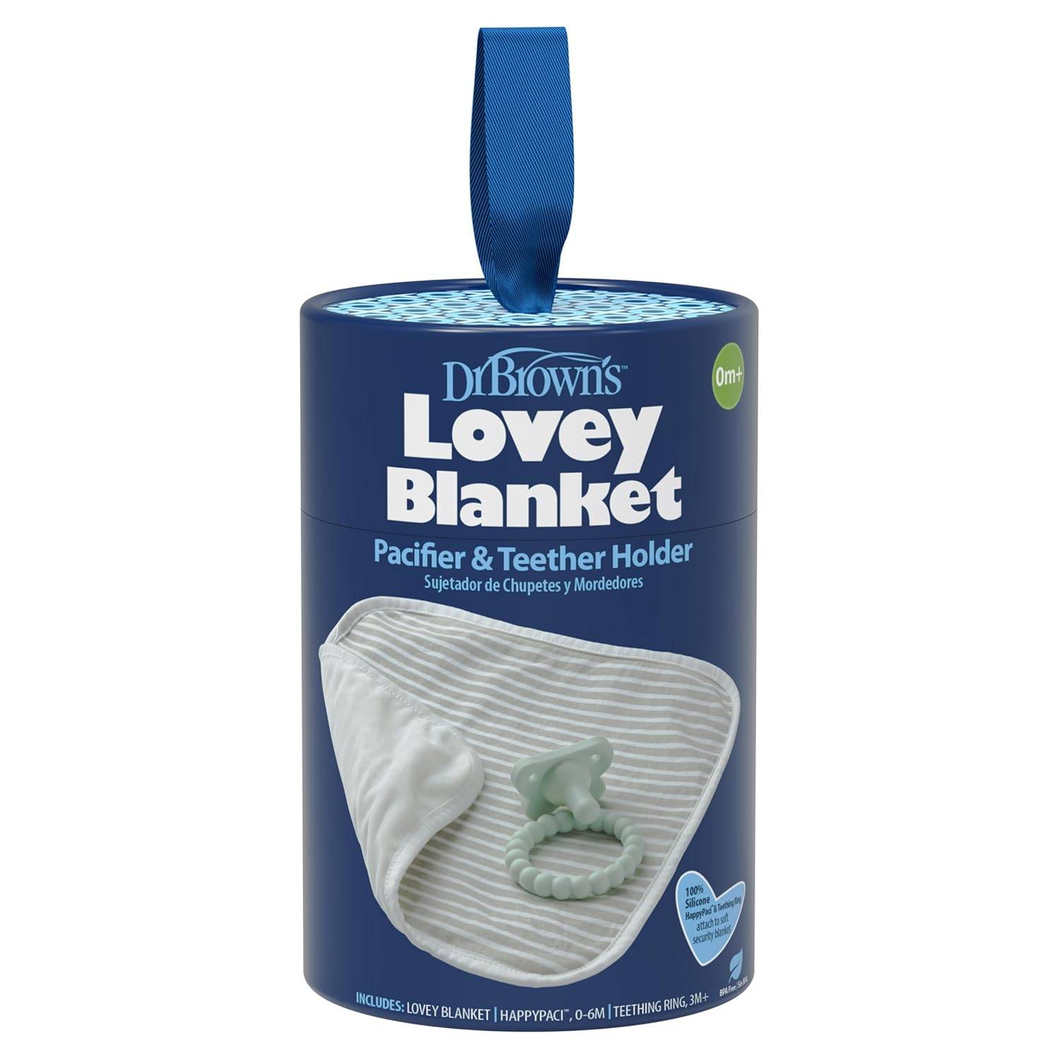 Dr Brown's Lovey Blanket with Ring Teether and HappyPaci Silicone One-Piece Pacifier-0m+ Gray Stripes, AC280