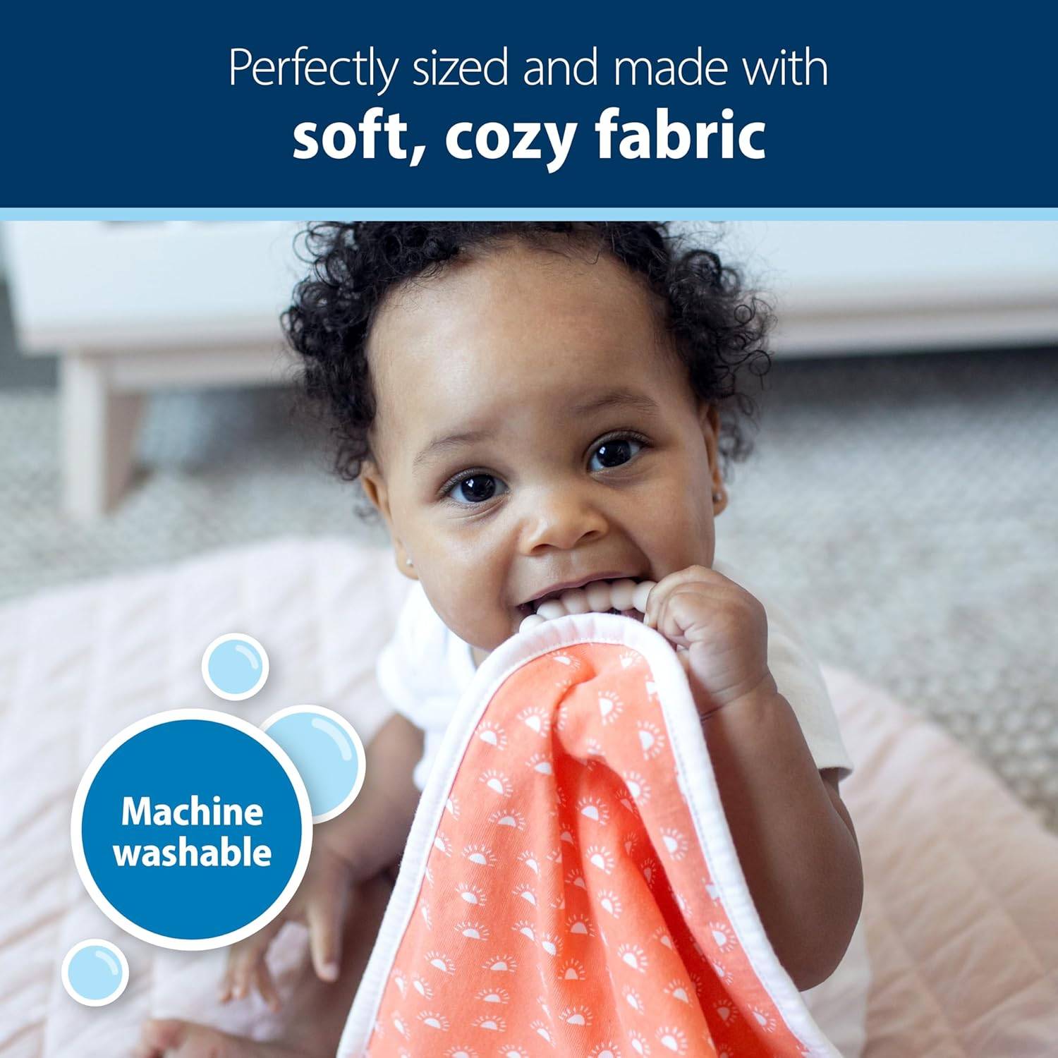 MACHINE WASHABLE BABY BLANKET. Dr. Brown's Lovey Blanket is made of soft, machine-washable fabric.