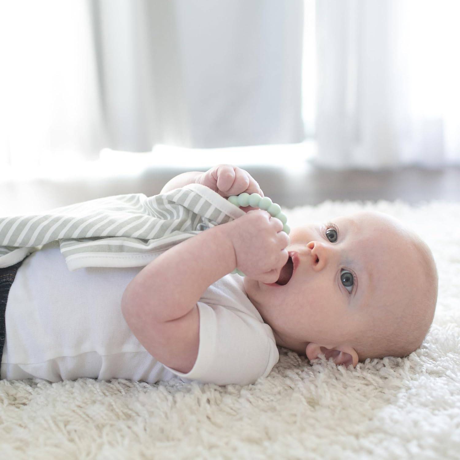 SILICONE BEADED TEETHER RING. Help soothe baby's sore gums with the included refrigerator friendly 100% silicone Flexees beaded teether ring. Dishwasher (top rack) and sterilizer safe. 3m+.