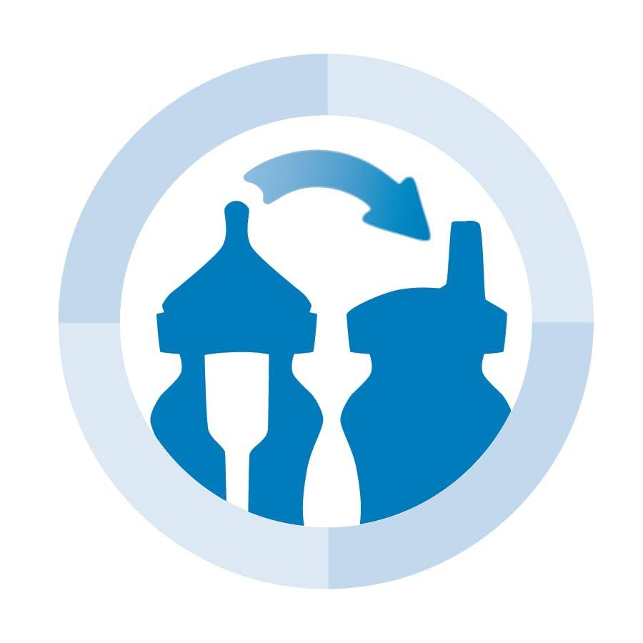 Having trouble getting baby to take a sippy cup? Start with baby steps using the Dr. Brown’s Option’s+™ Wide-Neck bottle that baby is familiar with. Just remove the vent and replace the bottle nipple with the super soft, 100% silicone sippy spout.