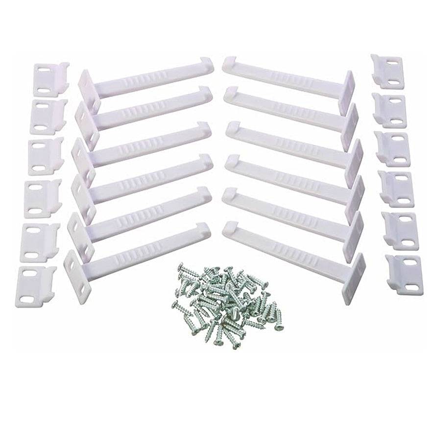 WHERE TO USE: They are suitable for use on the top or side of most cabinets. Safety Catches are also suitable for use on top drawers. They may be used on lower drawers where there is a top divider to which the catch may be fitted.