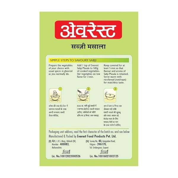 DESCRIPTION: A subtle blend of spices especially combined to enhance the taste of vegetable dishes. Everest Sabji Masala is virtually the fast-food equivalent in the range of Everest blended spices. It gives vegetable dishes a mildly resonant flavor and the appetizing color so characteristic of vegetarian fare.