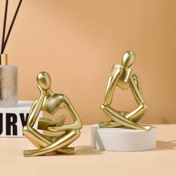 Gold Abstract Reading Books Figurine Thinker Statue Resin Sculpture