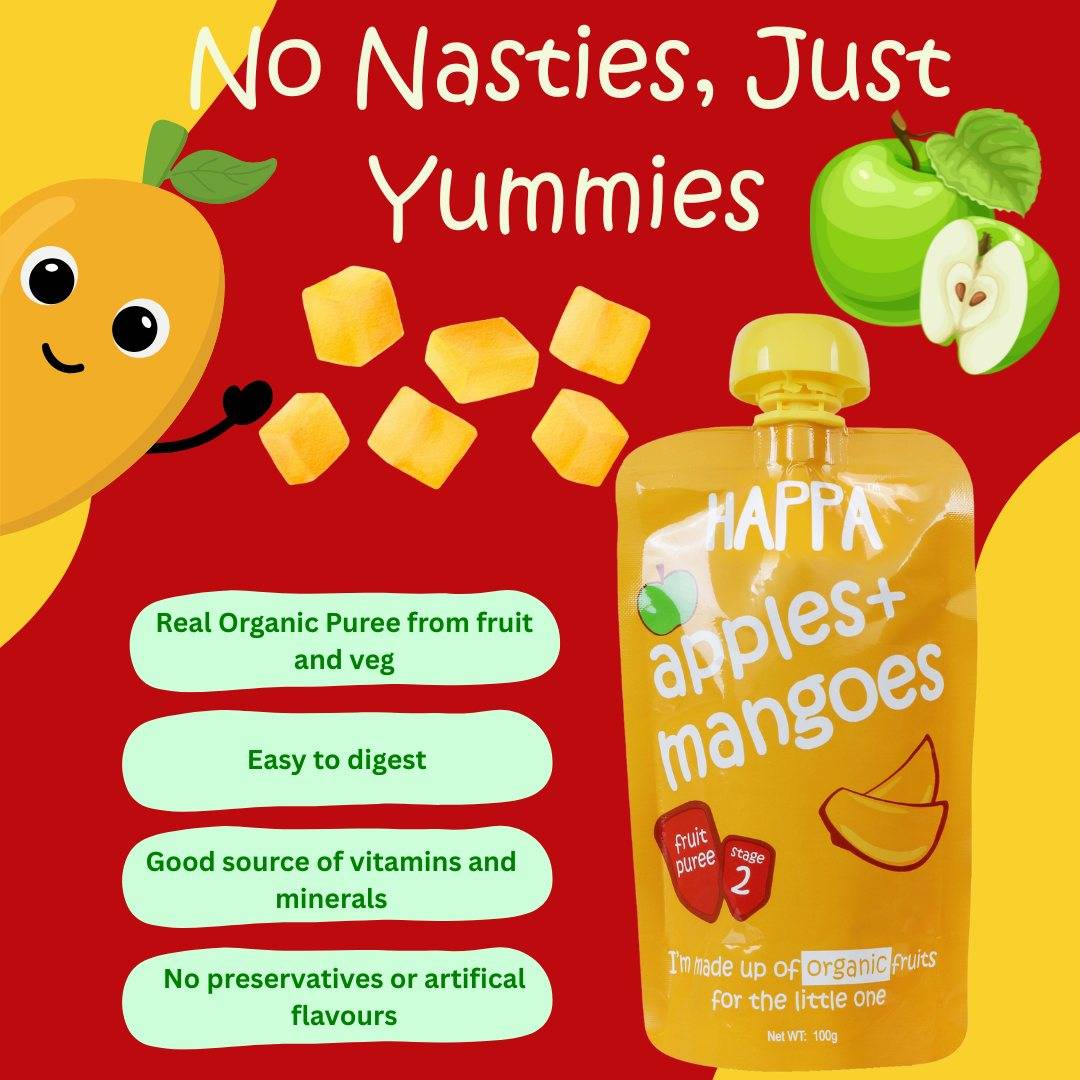 Happa's Organic Puree Combo made to help you introduce new flavours, colors and textures to your little one. Made with organic fruits & grains,