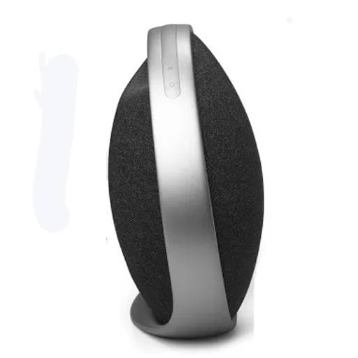 The Onyx Studio 9 features a premium fabric finish and an iconic circular form with an anodized aluminum handle, combining portability with modern aesthetics.