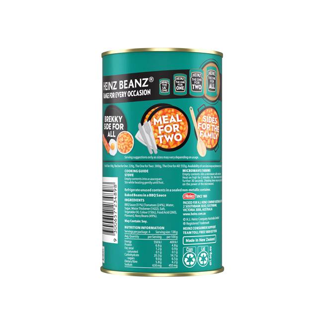 If you fancy trying something with a more daring taste, try Heinz Baked Beans in BBQ Sauce. Sure to make your taste buds tingle, these baked beans are perfect for breakfast, lunch or dinner. Heinz Beanz BBQ Sauce are a fun take on an old favourite. Mixed with a BBQ sauce instead of our classic tomato sauce, these beans are still great on toast. They're naturally high in dietary fibre, low in fat and provide a source of protein. Kick start your day with some Heinz Baked Beanz BBQ Sauce and fried eggs in the morning, or enjoy these BBQ beans in a cheesy toastie for lunch or dinner.
