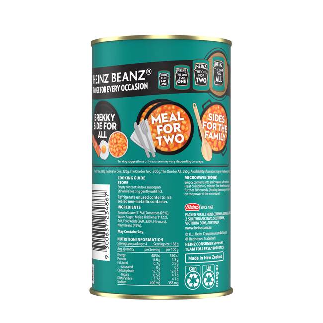 Heinz Baked Beans in a deliciously rich tomato sauce - what's not to love? Heinz Beanz don't just taste great; they are naturally high in dietary fibre, a source of protein and low in fat too, making them a great meal option for kids and adults alike. Whether you like your baked beans in a toastie, on a baked potato or as part of a big English breakfast, you really can't beat the Heinz Baked Beans recipe. They can be enjoyed at any time of the day, as a snack, a meal or a side dish with dinner. While Heinz Beanz are the perfect topping for beans on toast or served with pasta, you can also incorporate them into casseroles, pasta sauces, pies and Mexican dishes too.