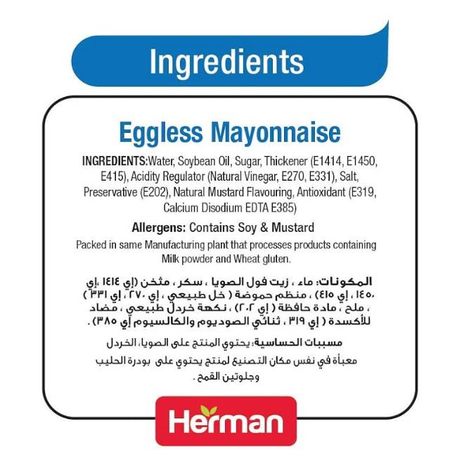 Enjoy the creamy, rich taste of Herman Eggless Mayonnaise, the perfect choice for those who prefer a delicious, plant-based alternative to traditional mayo. Smooth, versatile, and full of flavor, this egg-free mayonnaise is ideal for vegetarian diets without compromising on taste or texture.