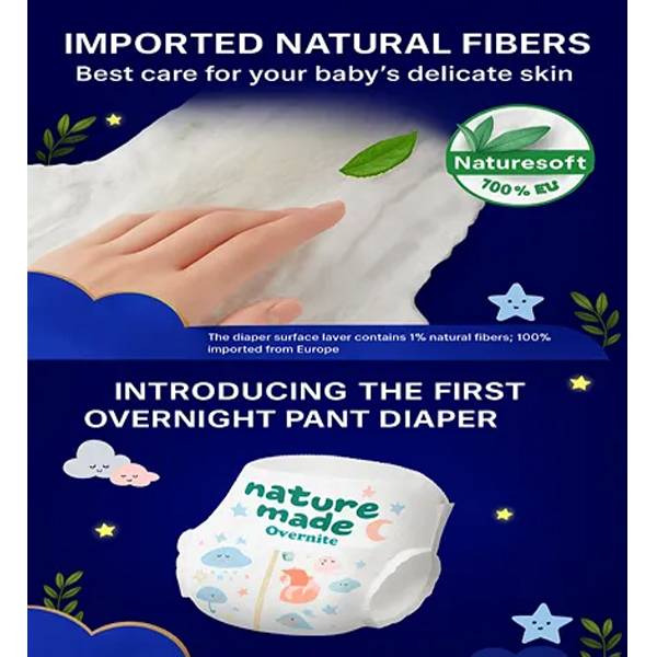 Huggies® Naturemade™ Overnite Nighttime Diapers are innovatively designed with: