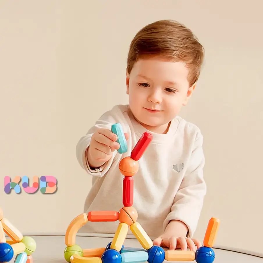 Unleash your child’s creativity with the KUB Magnetic Blocks 50 pcs Vehicle set. These magnetic wonders provide a safe, educational, and endlessly entertaining experience for your little one.