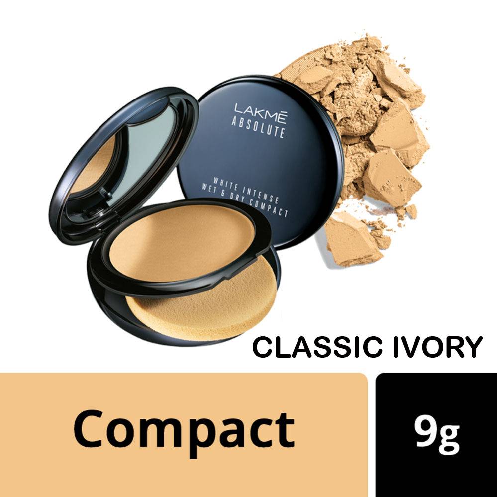 - The dual Lakmé Absolute White Intense Wet and Dry Compact contains a unique formula of Hyaluronic acid hydrates which restores the natural glow and Vitamin B3 acts as the fairness agent.