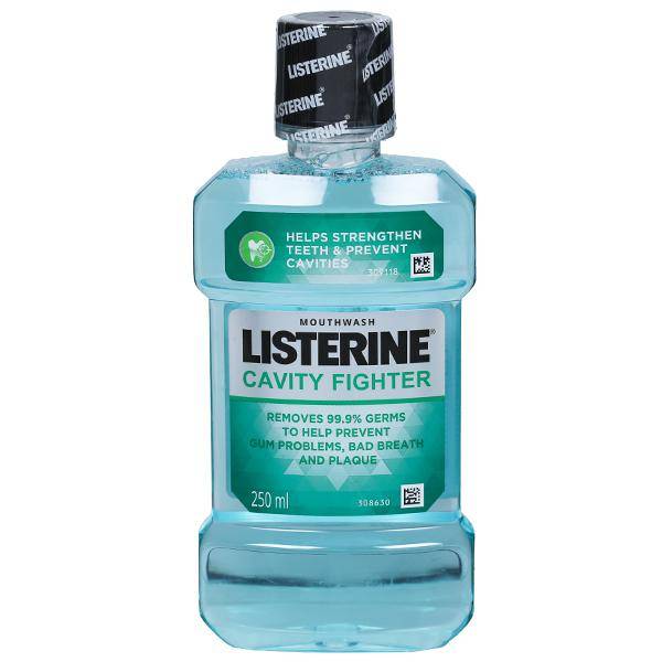 Brushing cleans only 25% of your mouth. Germs left behind in your mouth may cause bad breath, plaque, and gum problems. LISTERINE® Cavity Fighter Mouthwash reaches all parts of your mouth to remove 99.9% of germs and reduce gum problems in 2 weeks. Our unique formula with 4 Essential Oils (Menthol, Thymol, Eucalyptol, Oil of Wintergreen) deeply penetrates to remove the bacteria in the plaque biofilm. LISTERINE® Cavity Fighter Mouthwash forms a protective fluoride layer, protecting teeth from cavities.