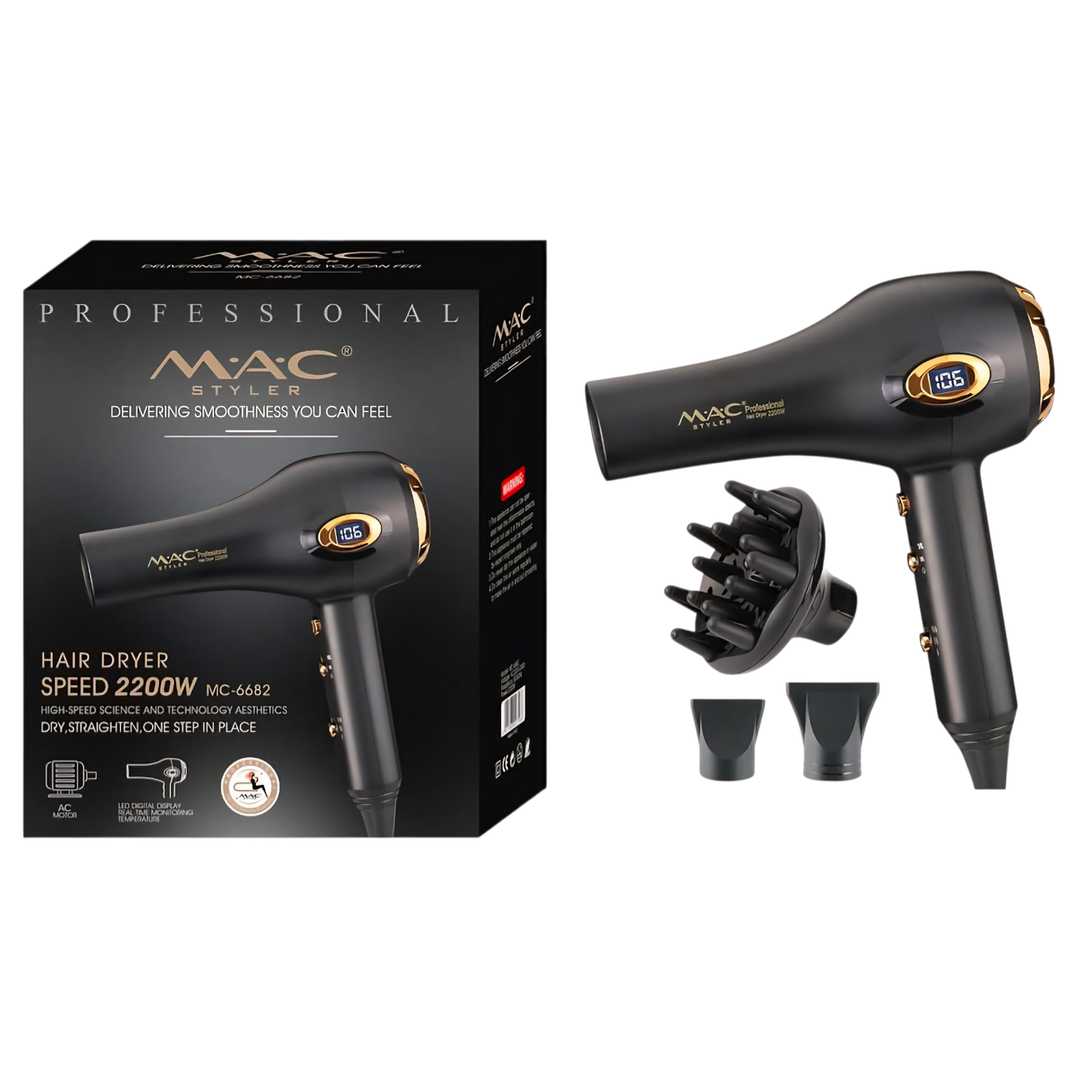 Comes with two different concentrator nozzles for sleek, straight styling