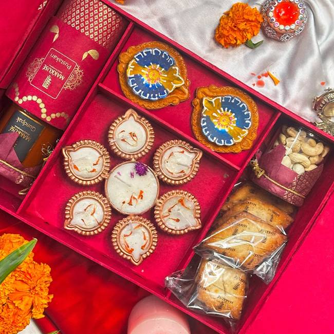 The Makkusé Ultimate Tihar Maroon Box 2082 is a heartfelt festival gift that carries not just sweet treats, but blessings, tradition, and love across miles. Thoughtfully curated for Tihar, it blends authentic Nepali flavors with artisanal craftsmanship, making it the perfect way to illuminate your family’s home in Nepal.
