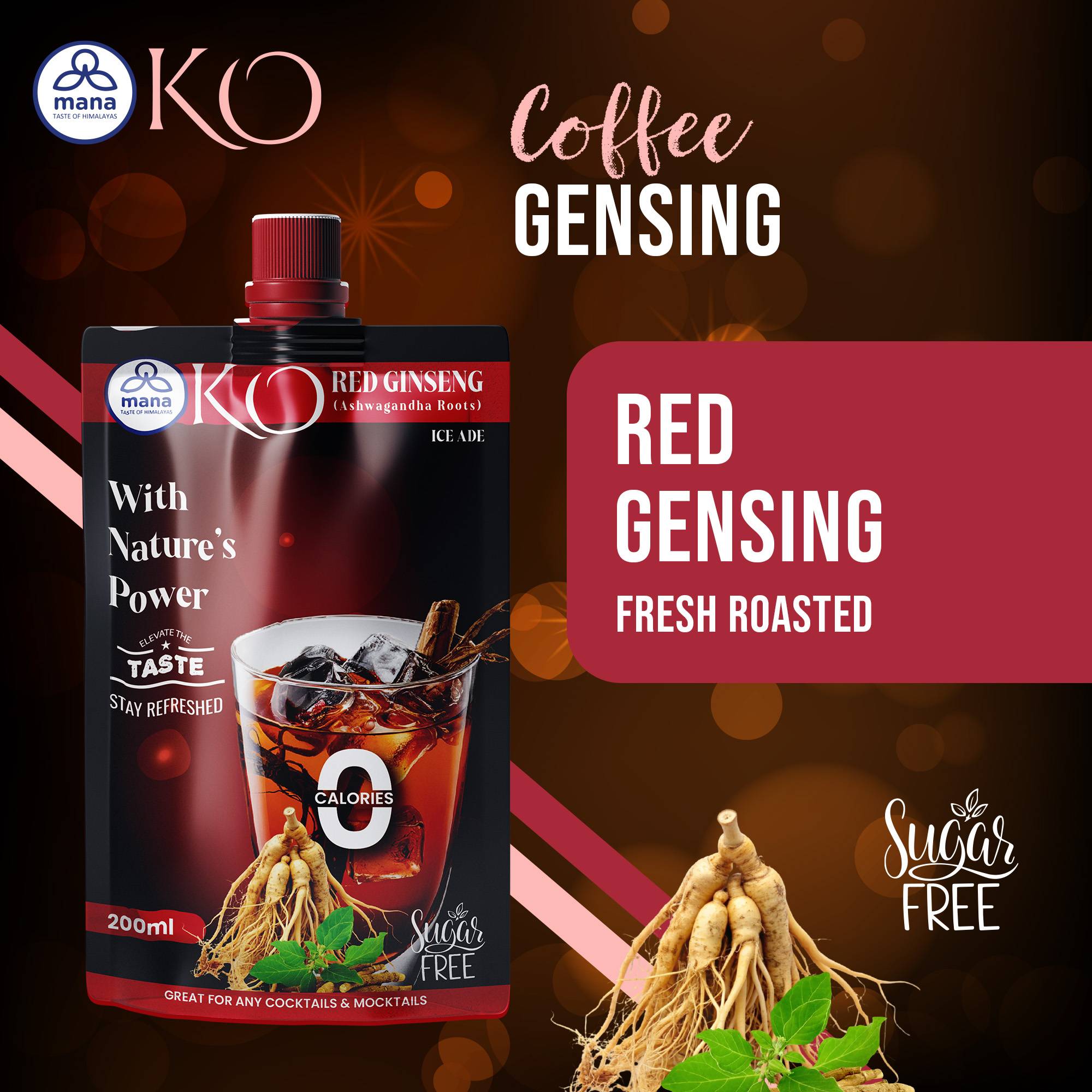- Mana Ko Ice Ade Red Ginseng Drink is a premium, revitalizing beverage that combines the natural goodness of red ginseng with a refreshing, thirst-quenching formula. Known for its health benefits, red ginseng helps to boost energy, improve focus, and support overall wellness. This drink is perfect for those looking to energize and hydrate with a natural, flavorful option.
