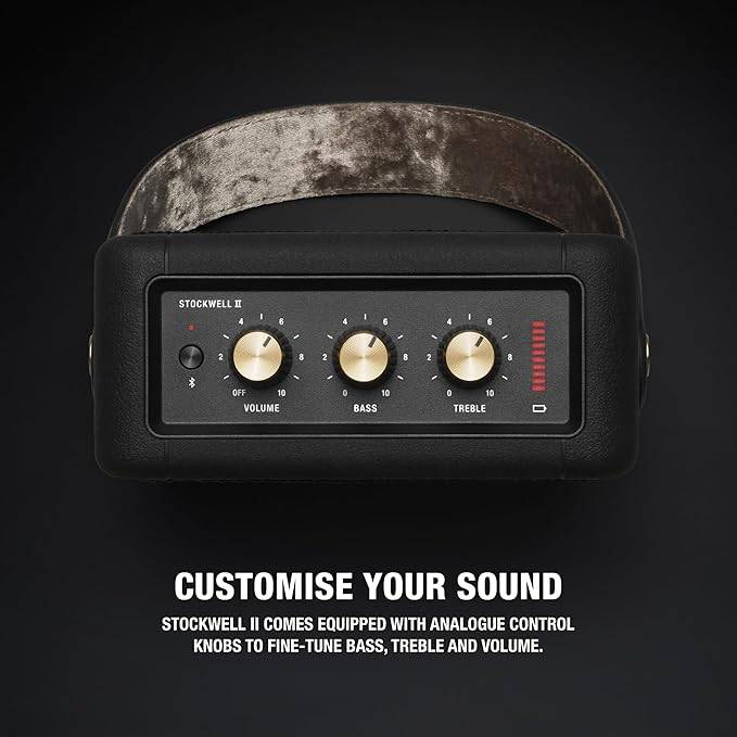 Echoing the legacy of rock ‘n’ roll, Stockwell II has a solid metal grille that pays homage to the steel mesh grille found on many microphones. It also comes equipped with analogue control knobs to fine-tune your music. Stockwell II’s roadworthy construction with silicone exterior also makes it extremely rugged and durable.