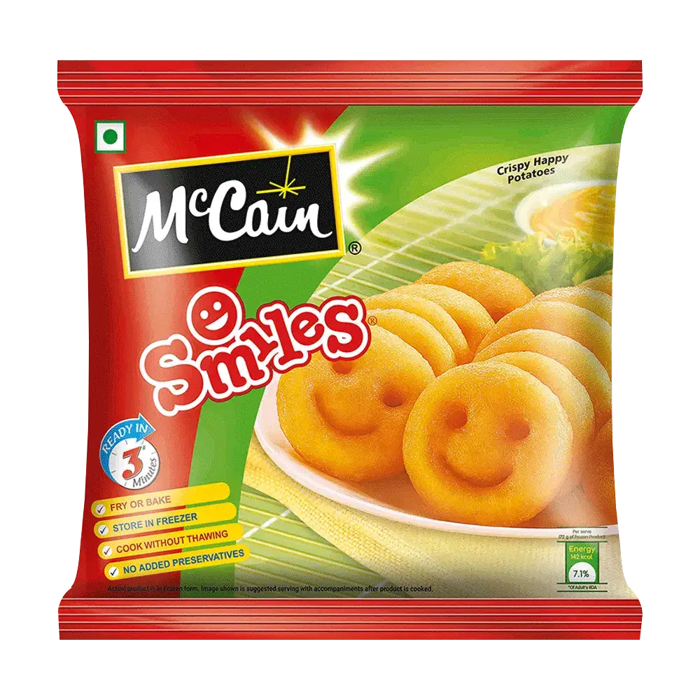 McCain Smiles Crispy Happy Potatoes is a ready-to-eat snack, which is the perfect instant food you can prepare and serve at parties. Fluffy on the inside and crispy on the outside, it's a favourite among children who love the crispy and salty texture of the potato fries which come in the shape of smiling faces.