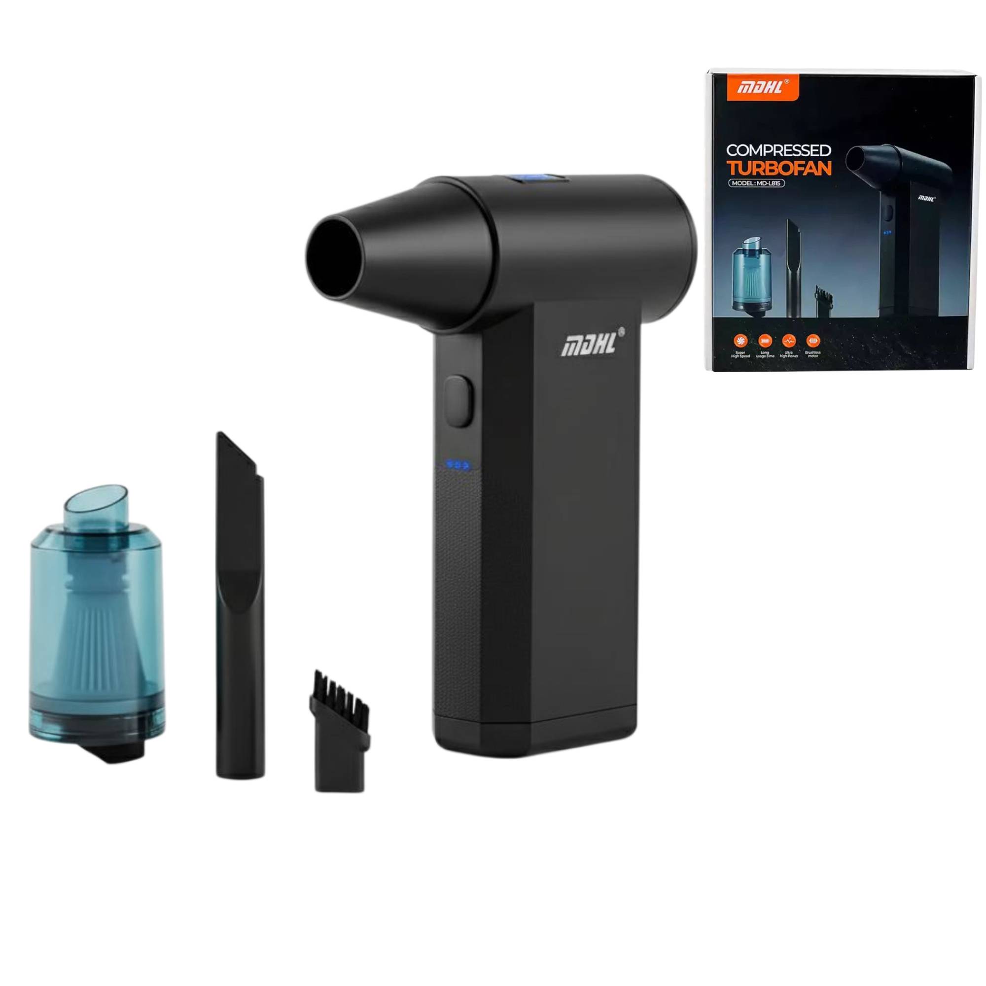 2-in-1 design combines a powerful air blower and a mini vacuum cleaner