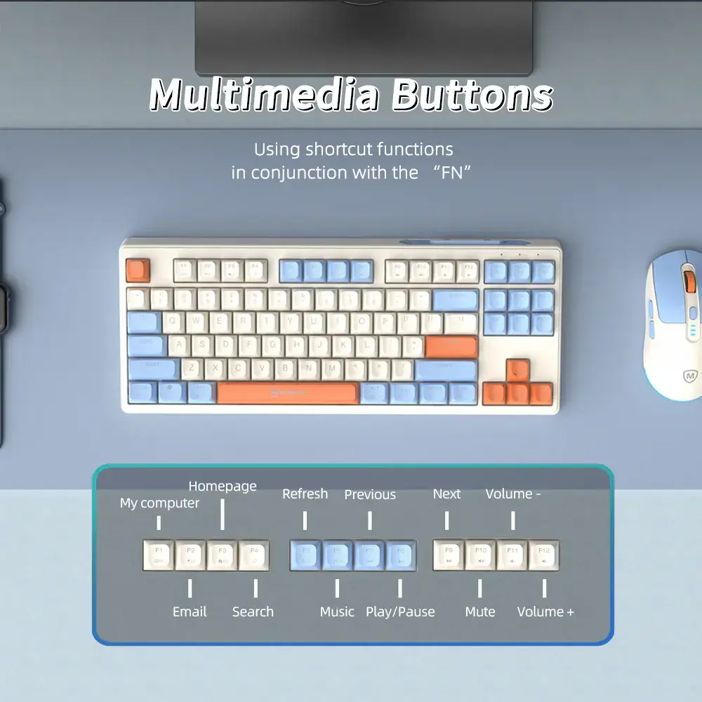 2.4G Wireless Connection: 2.4G wireless connection for both keyboard & mouse combo, up to 10 meters connection range.