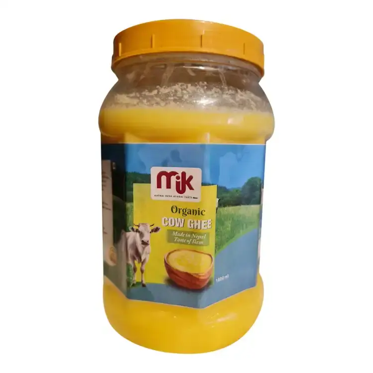 It is made from pure Cow Milk, which gives it a natural golden color. It is made from fresh cream (Nauni) and has a deliciously rich aroma and granular texture