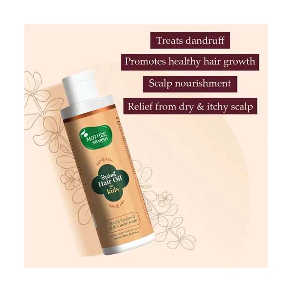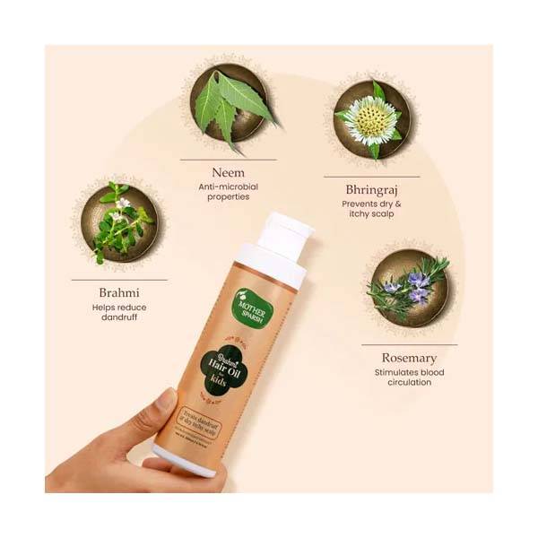 HELPS REDUCE DANDRUFF: Mother Sparsh Anti-Dandruff Hair Oil for kids with its promising infusion of ayurvedic herbs like Brahmi. Brahmi balances sebum production on the scalp and reduces dandruff & itchy scalp. NOURISHES SCALP: The blend of Ayurvedic herbs like Neem, Bhringraj & Methi in Mother Sparsh Anti-Dandruff Hair Oil penetrates the hair follicles deeply to nourish them and keep them healthy & itch-free. SCALP HYDRATION: The infusion of Ayurvedic herbs & essential oils like Jojoba Oil, Bergamot Oil & Avacado Oil glides smoothly on the dry scalp to provide the required nourishment & hydration to prevent itchy & dry scalp. STIMULATES SCALP: The presence of scalp stimulating herbs like Lavender, Rosemary & Jaitoon in our Mother Sparsh Anti-Dandruff Hair Oil improves blood circulation to the scalp & stimulates the hair follicles to promote thick hair growth & prevent dandruff. SAFE AYURVEDIC FORMULATION: Mother Sparsh Anti-Dandruff Hair Oil is free of chemicals that may trigger an allergy in your kids. The formulation is 100% safe for your kid's scalp & hair. |