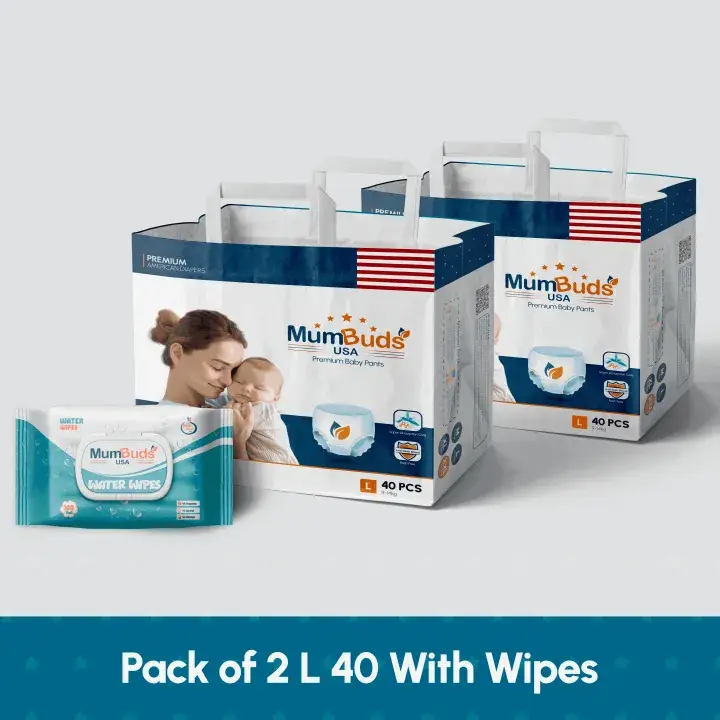 Product Details of MumBuds American Ultra Thin Baby Diaper 40Pcs Large Pack of 2 with Wipes:
