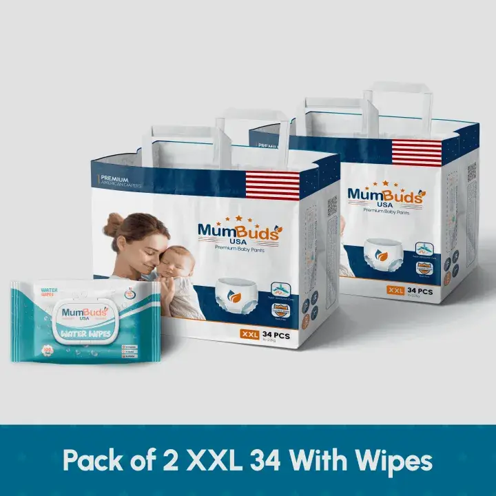 MumBuds American UltraThin Baby Diaper XXL 34Pcs Pack of 2 With Wipes