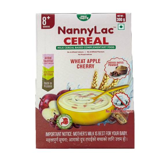 A wholesome milk-based cereal for babies 6 months and above, featuring a delicious wheat-apple flavor with dates. Packed with essential proteins, vitamins, and minerals, it supports healthy growth, is gentle on the stomach, and contains no added sugar, artificial colors, or preservatives. sugar free