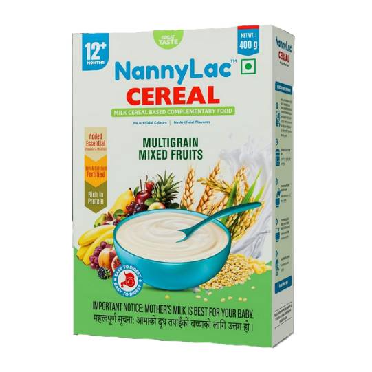 This 400g milk-based cereal in Multigrain Mixed Fruits flavor is designed for babies 12 months and older. Fortified with essential nutrients and rich in protein, it provides wholesome nutrition to support your child’s growth. The packaging reminds parents that breastfeeding is the best start for their baby.
