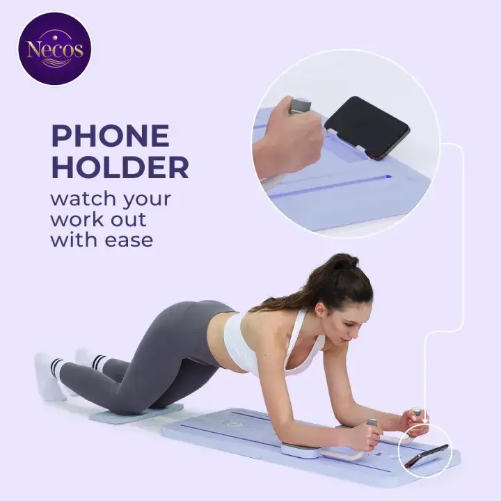 Necos Pilates Reformer Board Set Automatic Rebound Ab Roller Board Foldable Abdominal Board Exercise Machine for Home with Elbow Support and Resistance Bands