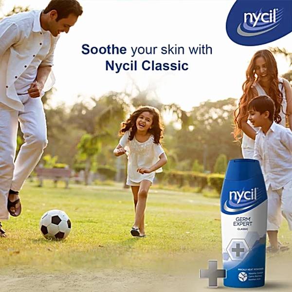 Nycil is a trusted and renowned brand in the prickly heat and cooling powder category, with a heritage of over 50 years in India. Formulated with a unique anti-bacterial formula, Nycil provides instant germ kill and visible results within 3 days from common summer skin problems such as sweat, body odour, itching, and rashes. The soothing fragrance helps fight body odour arising from sweating, while the antibacterial properties work to protect the skin against harmful germs. Nycil effectively absorbs sweat, calms rashes, and soothes itching, offering a refreshing and rejuvenating experience. With its expertise and efficacy, Nycil has established itself as the #1 brand in the prickly heat and cooling powder category, making it a trusted choice for addressing a wide range of summer skin concerns.