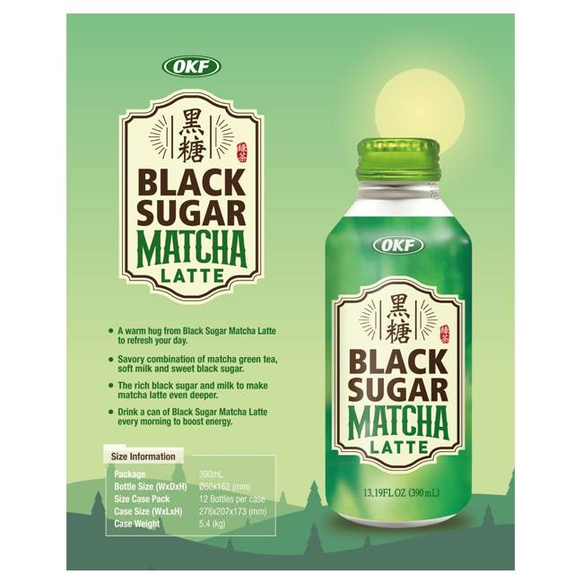 Indulge in the rich, creamy fusion of tradition and trend with OKF Black Sugar Matcha Latte. This ready-to-drink beverage combines the earthy elegance of premium Japanese matcha with the deep, caramel-like sweetness of black sugar for a perfectly balanced and satisfying experience.